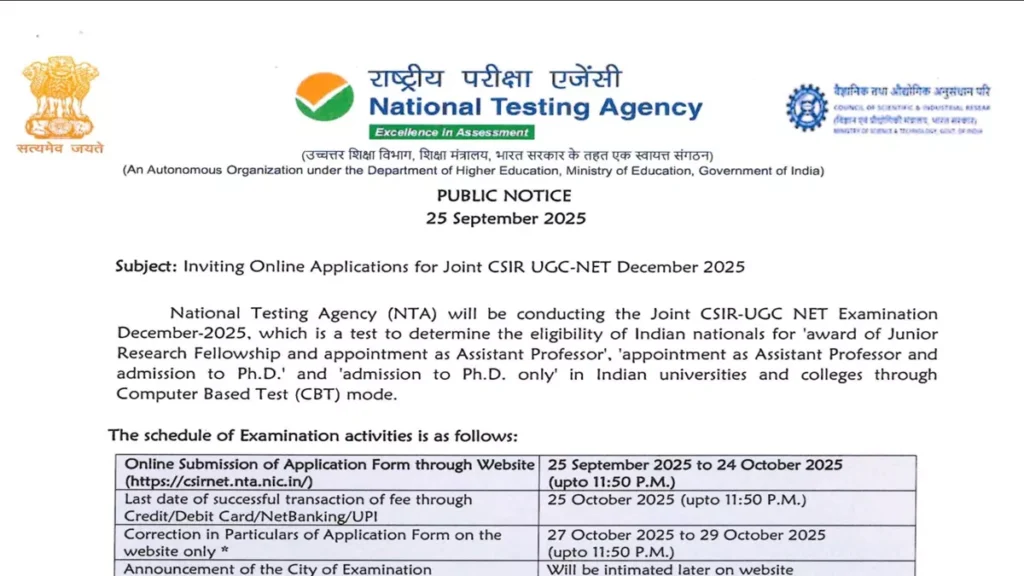CSIR UGC NET December 2025: आवेदन की आखिरी तारीख 24 अक्टूबर | ऐसे करें रजिस्ट्रेशन